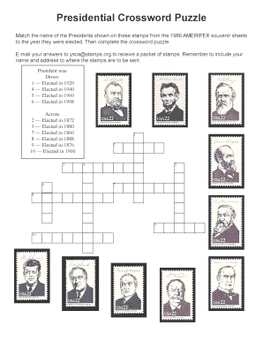 101 Crosswords Presidents Edition. Crossword Puzzle Printable version Back to all Crossword Puzzles. Kids try out this fun crossword puzzle game about United States Presidents.